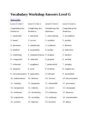 Download Level G Vocabulary Answers Doc