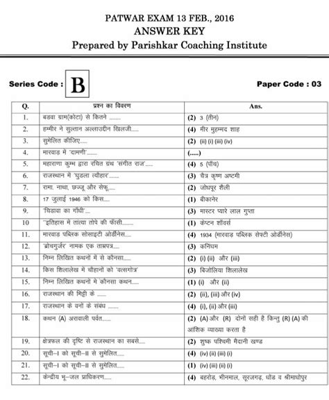 Download Parishkar Coaching Answer Key Patwari Epub
